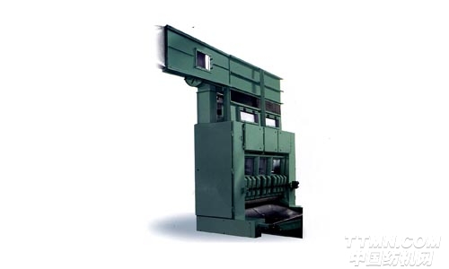 ●本機是非織造布梳理機的喂入裝置,纖維經前道開清工序處理后,由輸棉風機送入本機上部的儲存箱,形成一定密度的纖維組織,然后經一對給棉羅拉喂入下方的開松輥進行開松,將纖維送到下箱,并在均勻氣壓和振動板作用下,形成均勻纖維層.由一對輸出羅拉送出,通過輸送帶或自調勻整裝置喂入梳理機。