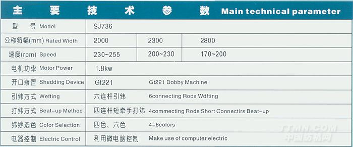 用 途 SJ736型劍桿織機集SJ758型和國內外劍桿織機的優點于一體,該機特別適用厚重織物。 特 點 引緯裝置采用六連桿引緯結構方式,能確保劍頭左右進出時間調整,引緯、接緯穩定可靠。 本機采用四連桿短牽手和短筘座腳打緯 ,搖軸用Φ110mm 無縫管結構,確保打緯力,能適合高速運動和厚重或高密織物的織造。 傳劍箱用最先進的螺旋傘齒輪合理設計而成,傳動穩定可靠。漲力裝置采用三后梁漲力結構,特別適用高密織造來平衡經紗漲力,提高織物的品質。