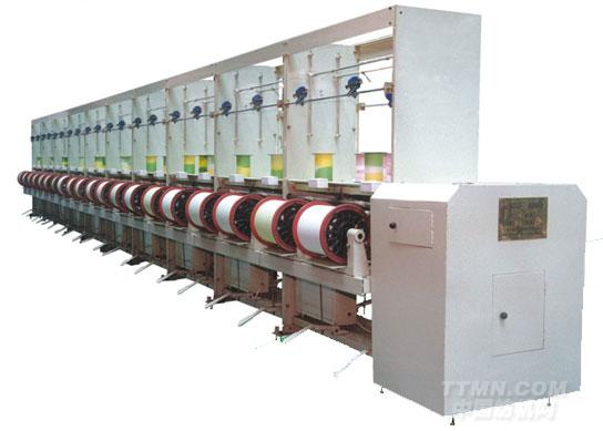 本機是化纖倍捻機的后道設備,把倍捻機上的卷取筒子倒成大卷裝,與無梭織機配套以減少停機時間,