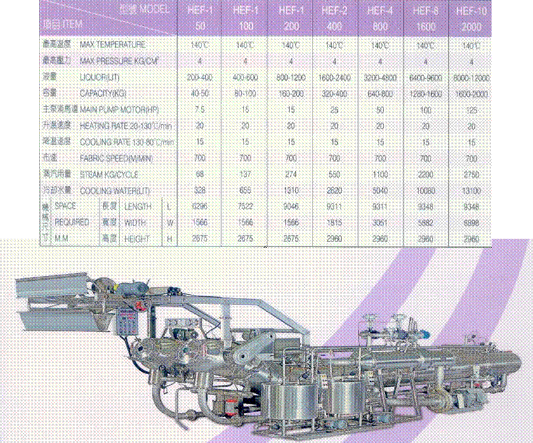 8、綜合上式液滿快速循環(huán),無張力漂浮及沖擊攜布作用等功能,適合泡泡布,化織,天然織維及人造織等各項(xiàng)織維之精練、漂白、減量染色。