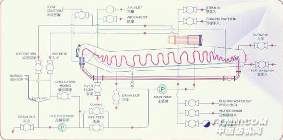 全機(jī)電腦自動(dòng)控制,讓生產(chǎn)合理化,利用中央監(jiān)控提供管理及成本資料,以及自動(dòng)化液量控制有效的減少缸差,提高了染色成功率。