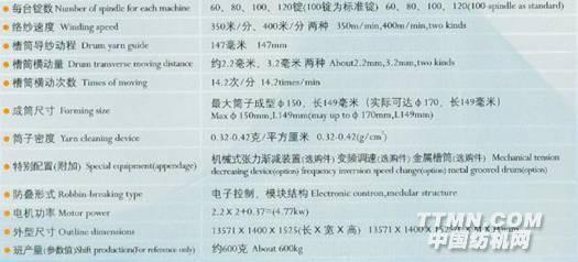該機器技術先進、設計合理、外形美觀、采用人機界面,PLC變頻調速,光電檢測斷紗自停,數字定長裝置,技術先進的高速,高產量,高性能,低噪音的通用型高速松式絡筒。適用于純棉、純毛、多種化纖的筒紗及管紗卷繞成圓柱或圓錐形松軟筒子供高溫,高壓機染色的使用。