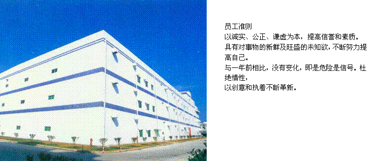 我們要建設這樣一個公司,即在開發、生產、銷售等全過程均注重客戶的滿意程度,我們每一位員工都為進一步提高客戶的滿意度而感到喜悅。在汽車、家電、住宅設施,OA/FA等世界各個領域中,把握客戶的需求,為了快速與之對應,從原料、加工到銷售的流水生產體制的基礎上,實行開發、營業一體化的組織體系。