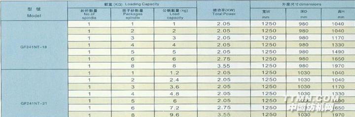 GF241NT-21、21(D)機(jī)型適應(yīng)筒子紗直徑φ190mm