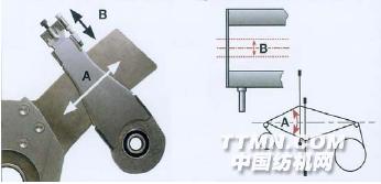 調節A:將提刀上的夾頭朝方向A移動來調節梭口的大?。?br>