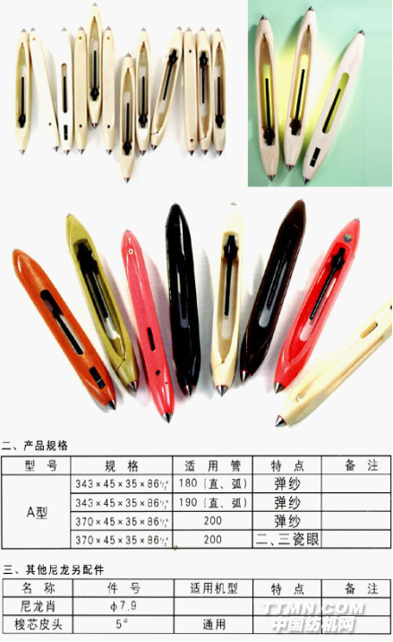 下表所列是我公司現有主要的規格品種,還可以根據用戶要求依照實樣和提供的圖紙,制作其它規格型號的梭子。