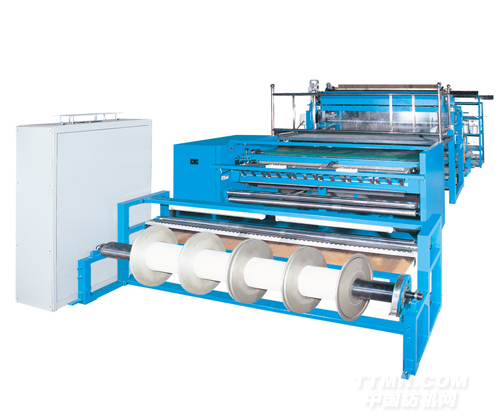 BS1-F短切氈型縫編機主要用于加工紡織玻璃纖維,應用于運動設備,機動車車身和船體等生產領域。從筒子架傳來的具有一定門幅的玻璃纖維經過縫編機后面的短切裝置,被切割成小段玻璃原絲(長度可以通過預先設定),短切后的玻璃原絲以氈片形式通過輸送帶傳送到主機進行縫編。隨機附帶的開幅機構使得輸出的成品可以按照不同幅寬進行切割。