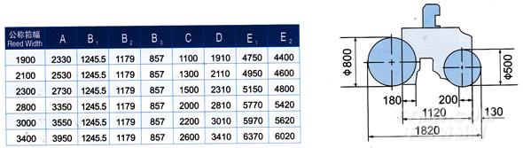JWG1724系列劍桿織機主要規格尺寸