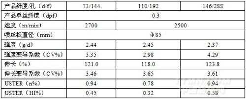 據悉,在此次國際紡機展上,日本TMT公司在展會現場為現場觀眾主要展示了CIQ 外環吹冷卻技術,這種新技術主要適用于紡制細旦絲。該產品的主要特點是:從噴絲板紡出的絲能以最省的能源達到最佳的冷卻效果;壓空消費量僅為普通側吹風方式的1/3;可以獲得 0.3dpf 等多孔超細旦高質量絲;在直徑φ85mm噴絲板上能紡出 288 孔以上的絲,減小了位距。在生產滌綸 POY 時能達到的主要技術規格如下圖所示。