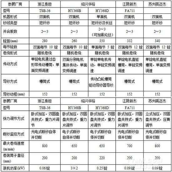 1.參展并紗機的主要性能及特點參展的并紗機主要技術參數及技術特征見下表