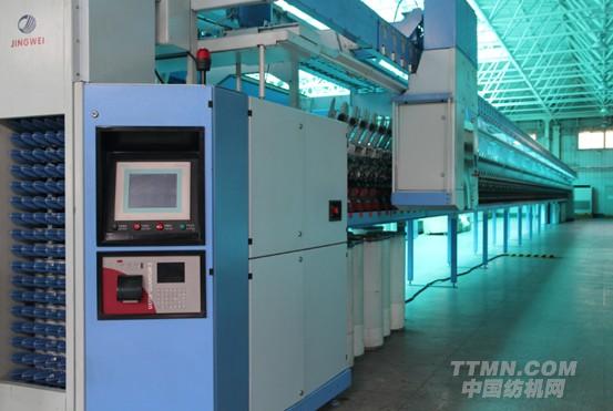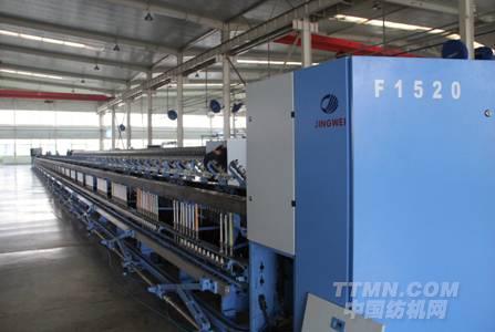 在棉紡機(jī)械總裝廠,我見到了JWF1520環(huán)錠細(xì)紗機(jī)。據(jù)我所知,JWF1520 環(huán)錠細(xì)紗機(jī)經(jīng)緯紡機(jī)榆次分公司自主研發(fā)的一款新型細(xì)紗機(jī),適用于棉及化纖的純紡或混紡的細(xì)紗工序,以單程粗紗喂入、紡制織造、針織等所用細(xì)紗。其紡紗工藝通過觸摸屏實現(xiàn)人機(jī)對話操作,使操作簡單和人性化,并留有聯(lián)機(jī)網(wǎng)絡(luò)接口;可配集體落紗系統(tǒng),具有高速、高效、高質(zhì)量、高穩(wěn)定性與可靠性的顯著特點,并可與自動絡(luò)筒機(jī)形成絡(luò)聯(lián)。