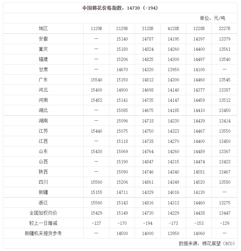 中國棉花價格指數(CC Index)及分省到廠價(8.9)