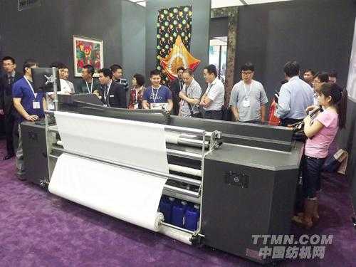 這次展會上,杭州宏華數碼科技股份公司帶來了多款產品,現場展示機器成果,引得不少人前來洽談業務。