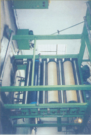 本機(jī)能對熱熔性合纖布進(jìn)行定寬切幅或作多幅條切割。