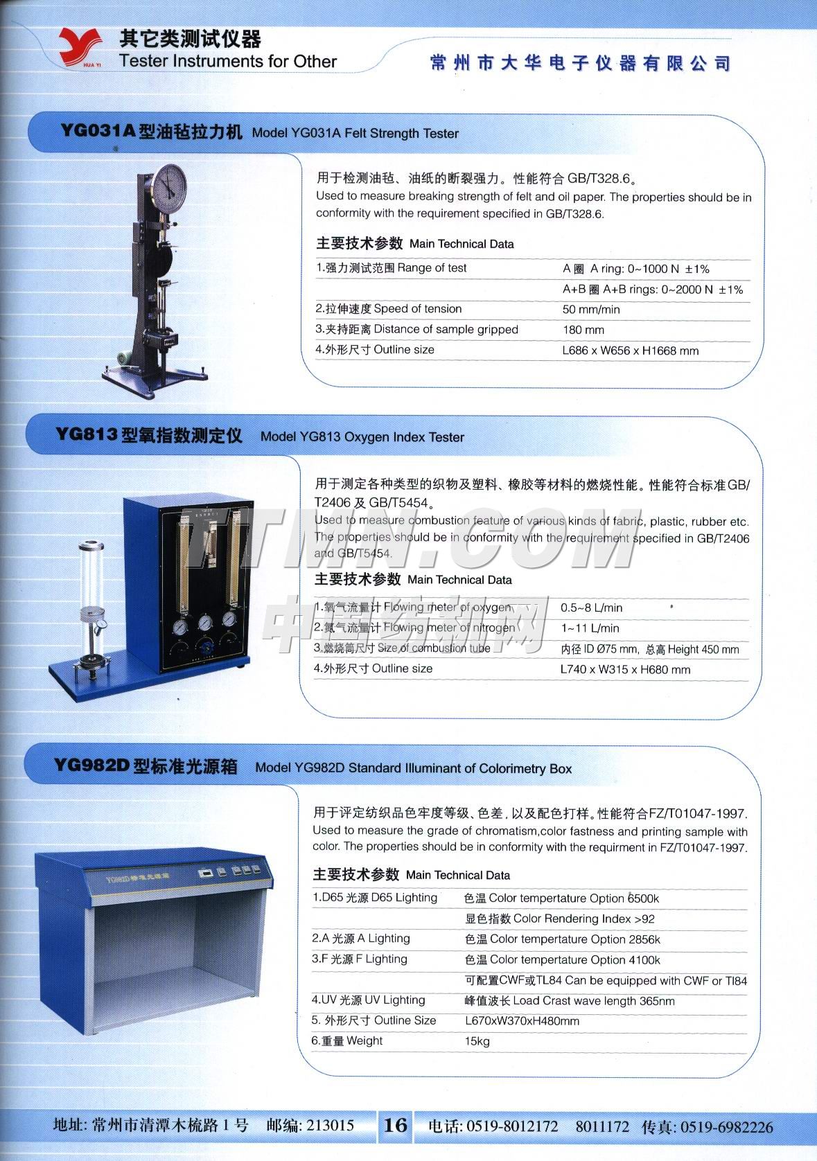 您所在的位置:紡機(jī)網(wǎng) > 紡織機(jī)械樣本庫 > 常州市大華電子儀器有限公司