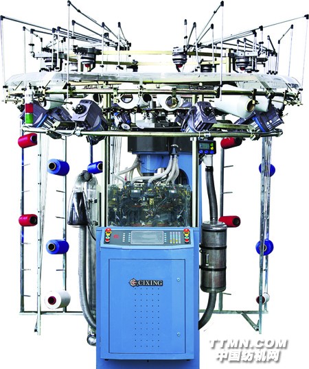 紗嘴:每路7個主紗嘴,其中2個色紗紗嘴,另加2個無浮線色紗紗嘴,可進行多色提花。
