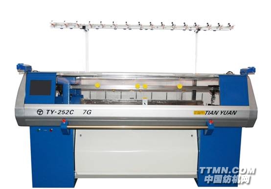 紗??? 嘴:8只紗嘴分別配置在4支導(dǎo)軌的兩側(cè),最多可配16把紗嘴,可在編制范圍內(nèi)由電腦控制任意位置切換。