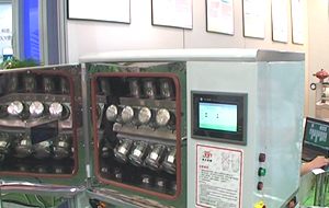 劉總:我們重點推薦的是這一款比較新型的紅外線全能打樣機。它能夠達到染色效果均勻,然后又環(huán)保,還有一個最關(guān)鍵的是它采用一個最新的控制系統(tǒng),就是采用觸摸屏控制的。目前國內(nèi)來說我們是第一家,最早開發(fā)的,我們從前年就開始做這個東西了,這是我們最新型的。