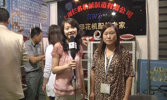 (圖為中國紡機(jī)網(wǎng)記者現(xiàn)場采訪上海仨名機(jī)械制造有限公司 王經(jīng)理)