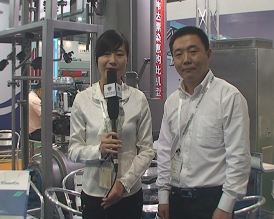 在2011上海紡機展上,全潤機械有限公司總經理李士全為我們介紹了公司此次參展的大致情況:“我們公司是03年成立的,短短八年的時間,應該是先從國內小作坊做起慢慢進入國內市場,從小做大,所有的產品現在已經走出國門,已經走出東南亞,有到馬來西亞、柬埔寨、越南、孟加拉、還有印度、印尼等東南亞一些正在發展的國家。在中國我們是做染整設備的,染整設備作為中國是一個很大的一個具有競爭性的,世界性公認的一個加工行業。我相信,通過我們這一代人的努力會把我們國內的染整設備做的更好。會向全球輻射。在此次展會中,是這樣的,現在我們主要的是定位在筒子染色這一塊,作為染色行業來講,筒子染色因為它屬于??,??就是說先紗線染色之后,通過后續的一些編織,現在因為電腦織機比較發達,各種圖案都可以做出來, 現在我們新的產品推廣,現在是準備做金卓染色,這一款就是我們金卓染色缸,