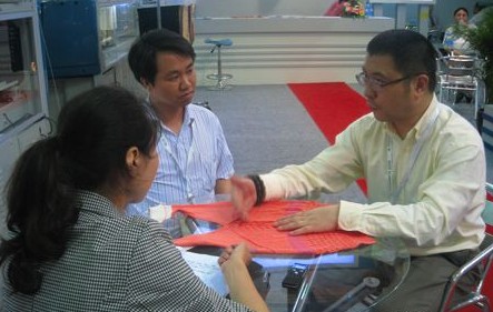 此次展會全球羊毛衫網與盛天攜手,在展臺現場派送了由全網出版的2011期《中國毛衫產業大全》,很多參觀盛天展臺的客戶們領取了《大全》,也吸引很多毛衫廠前來領取,他們同時也參觀了盛天電腦橫機