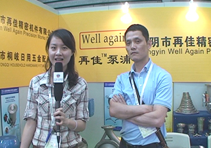 在2011上海紡機展的現場,中國紡機網記者采訪到再佳精密的吳總,同時吳總也介紹了公司參展的相關情況:“再佳精密這幾年發展比較快,主要是針對這個印染機械這塊開發的印染機械的水泵,幾年特別推出了一款環保的水泵,為了融合市場的需求。今年的銷量比較很快。我們明年準備開發比較先進的跟國外同步的水泵,就是推向市場,融合客戶的需求。它主要是做機械上用,染發的、染布的這一塊,另一方面來說相對污染比較嚴重的那塊是通過水泵跟機械的配合,它可以降低能源,環保這塊就是融合國內的需求,就是這樣子的產品。