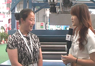 (圖為中國紡機網記者現場采訪駿機貿易有限公司區域銷售經理 楊海穎)
