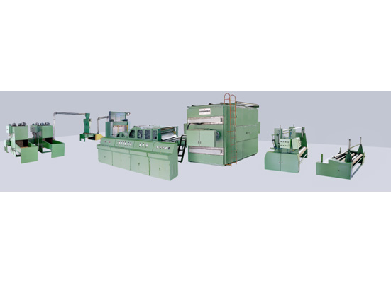 工藝流程: 一步法:開包混合開松→振動定量給棉→雙錫林雙道夫→寬幅高速梳理成網(wǎng)→熱風(fēng)烘箱→自動成卷→分切 二步法:開松混棉→給棉→梳理→鋪網(wǎng)機(jī)→主梳理機(jī)→熱風(fēng)烘箱→成卷機(jī)→→分切機(jī)