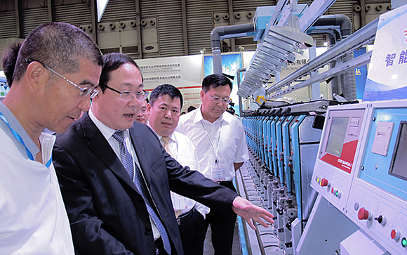 在第十六屆上海紡織工業展上,青島宏大展出了20錠的SMARO-E托盤式自動絡筒機。這次展出的SMARO-E以全新的外觀亮相展會,亮麗的色彩和外觀令人耳目一新,吸引了眾多中外客商觀摩。SMARO-E最大的特點之一就是節省用工,也正是這個特點吸引了廣大用戶。