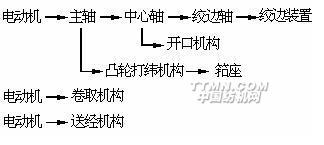 在有梭織機上,首先由電動機通過皮帶傳動驅動主軸回轉,再由主軸傳動其它機構。