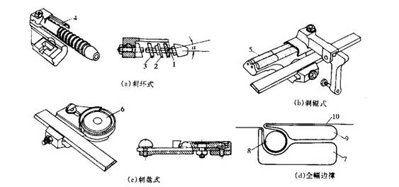 邊撐的形式主要有刺環(huán)式、刺輥式、刺盤(pán)式和全幅邊撐等幾種,如圖10-7所示。其中以刺環(huán)式應(yīng)用最多。