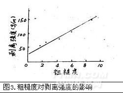 機(jī)械粘合與織物的表面粗糙有關(guān)。粘合強(qiáng)度與表面粗糙度關(guān)系如圖3所示: