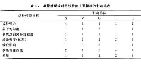 現代轉杯紡紗機可配置不同形式的凝聚槽,以適應不同纖維和不同紡紗要求。表3—5和表3—6所示為不同形式凝聚槽的紡紗性能及適紡品種(以賜來福公司為例),表3—