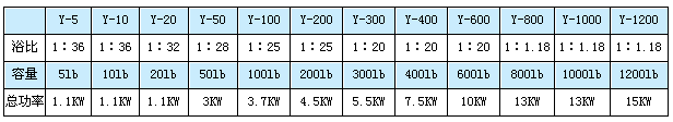 量可從5公斤到500公斤(羊毛),絞紗圈長在1016—1830毫米(40″~72″)之間,是羊毛、絲類、人造毛、人造棉或混紡等紗類較理想的前后處理及染色的加工設備。
