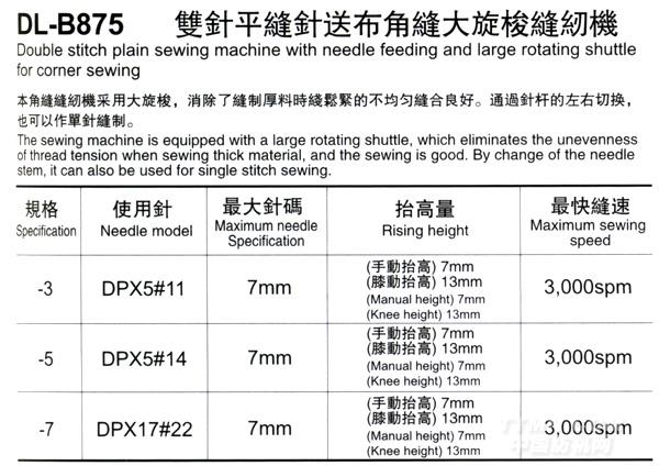 雙針平縫針送布角縫大旋梭縫紉機   DL-B875