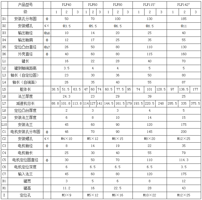備注:PLF系列與PL系列技術參數相同