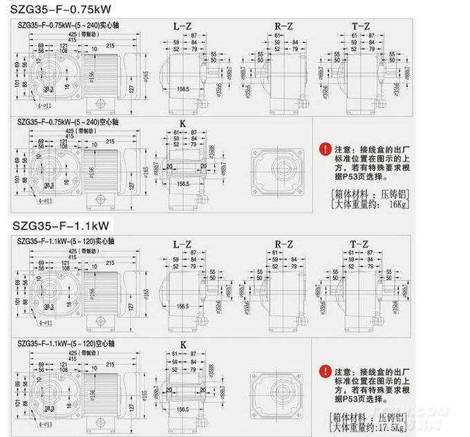 SZG-F直交軸中型35框減速機(jī)詳細(xì)參數(shù):