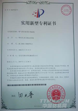 噴氣織機產品質量合格證書                                            粗紗機產品質量合格證書