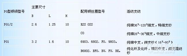 我廠生產的PG型棉紡鋼領,各種規格已成系列。專供環錠細紗機和捻線機上使用。適合紡純棉,化纖,以及各種纖維的混紡紗、線。PG型鋼領上的鋼絲圈最高線速度可達38米/秒。由于鋼領表面采用了高科技處理技術使鋼領具有自潤滑耐磨性能,特別適用于棉紡行業優質、高產、低耗生產。受到中外客商的一致好評。