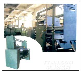 13、傳動方式:采用直流電動機多單元同步傳動,有可控硅直流電源柜供給可調電源柜供給可調電源,進行全機調速,由擺式松緊架變阻器調節從動直流電動機磁場,進行單元機之間的速差微調,以達到同步目的,透風架導布輥及蒸箱導布輥,均用力矩電動機拖動。