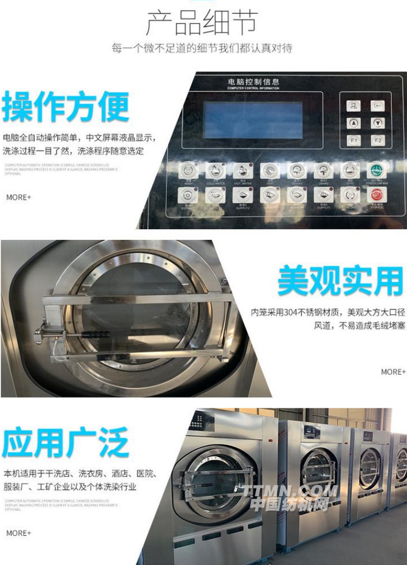 業,賓館,酒店,醫院,學校,鐵路,機場,度假村,招待所,洗衣房等多種行業。并遠銷日本及東南亞地區,博得國內外用戶一致好評。本廠實行三包,終身服務,并提供各種配件和修理。歡迎選用本廠產品,熱誠等待您優質洗滌設備,到泰州通江,銷售服務24小時熱線:13801431799