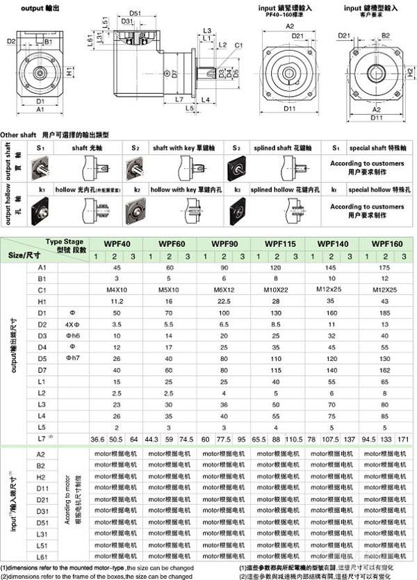 PF/WPF 系列精密行星減速機技術參數