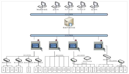 ①數據采集設備——對車間設備連接的參數傳感器進行數據采集,為現場監控終端提供數據來源。采集設備主要包括:車速碼數采集模組、溫度采集模組、縫頭采集模組、門幅采集模組、含潮率采集模組以及能源(水、電、汽)數字儀表等。
