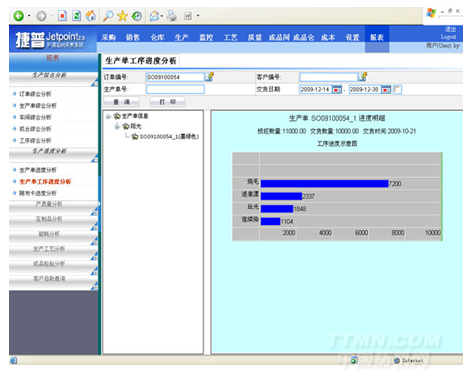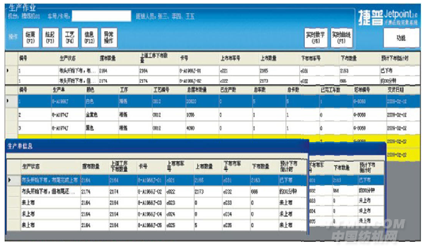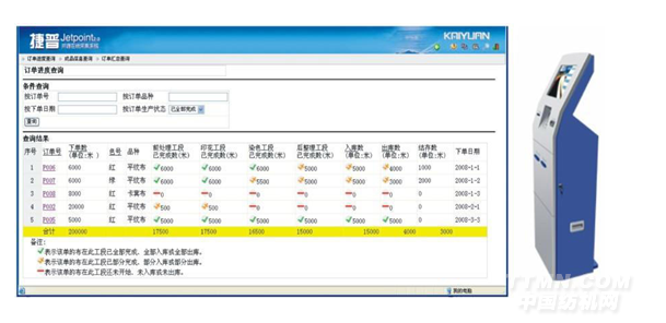(2)客戶自助終端——在樣品陳列室或客戶接待室,設置客戶自助查詢終端;或者在企業網站上開設查詢頁面,客戶可以通過自助查詢終端或互聯網查詢自己訂單的實時生產進度、查看成品的驗布報告、查看歷史訂單等。