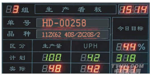 (1)車間LCD看板系統——滾動顯示訂單生產進度、當前車間的生產任務、產量匯總信息、車間布帳流轉信息等。