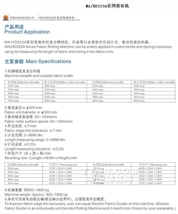 MA/HD223A系列卷布機