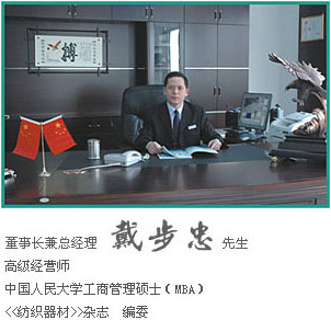 在優(yōu)秀企業(yè)家戴步忠先生的正確率領下,緊緊抓住紡織工業(yè)結構調整歷史機遇,務實進取,開拓創(chuàng)新。致力提高產品自主化水平,將新技術、新工藝、新材料的廣泛運用到產品中,努力提高梳理器材的技術水平和可靠性為切入點;深化產學研模式,推動產品結構優(yōu)化升級。將企業(yè)培育為一流紡織器材制造商和供應商,為紡織企業(yè)做大、做精、做久再立新功。