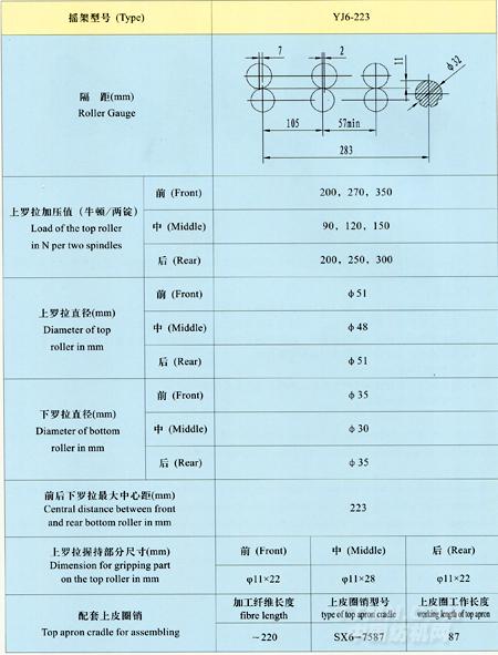 YJ6-223型毛紡細(xì)紗彈簧搖架主要技術(shù)參數(shù)