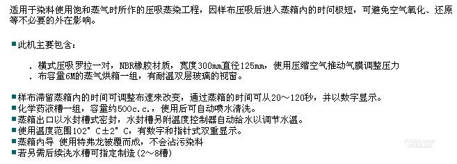 您所在的位置:紡機(jī)網(wǎng) >> 廈門(mén)瑞比精密機(jī)械有限公司 >> 連續(xù)式壓吸蒸染試驗(yàn)機(jī)