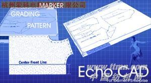 Garment CAD: IEchosoft Garment CAD includes: Pattern Design, Grading, Auto Marking, Process Design, Data convert, style design, etc. Pattern Design:  Supply many tools for different pattern design approaches, such as proportion pattern making, formula pattern making, prototype pattern making, intellective structure-line pattern making, convenient pattern making etc., to meet the different requirements of pattern designers of different ages and different habits in pattern making.  Supply standardized input and output functions, can connect with other output equipments.  Grading:  Supply the most complete and convenient grading approaches, such as Auto-grading, Spec-grading, Equal-grading, Unequal-grading, Copy-grading, Direct-grading after inputting etc.  Divide the graded pattern at will and there is no need to set again before grading, which improves efficiency.  Auto Marking:  Supply different proposals instantly.  Output the marker sheet in the proportion of 1: 1 or in any another proportion either by plotter, or as the data of CAM directly.  Process Design:  Make complicated manual making process easy, establish enterprise process form model according to text and chart link to strengthen production management.  Abundant graph tools, for example: Single stitch, double stitch, bridding, covering stitch, zip, button, etc., which makes graph easier, and modifies without any trace.  Data Convert: You neednt worry about business for data communication with international CAD software. Data could be converted by IECHO CAD directly, TIIP-DXF (Japanese CAD standard), AAMA-DXF (American CAD standard) both could be transferred by echo. This ensures the converting of data between different systems of different countries conveniently. Style Design: Supply many designs and international standard PANTONE textile color card. Change colors, fabrics, material on model practically, display effects quickly for selection. We also supply one complete set of CAM: digitizer, pen plotter, ink plotter, cutting plotter, spreading machine, auto fabric cutter,etc.
